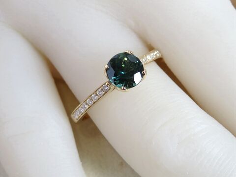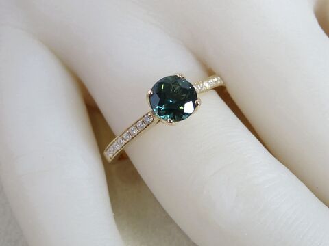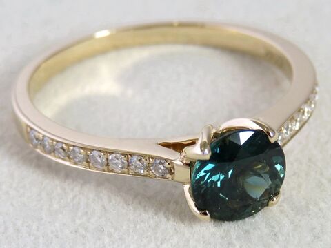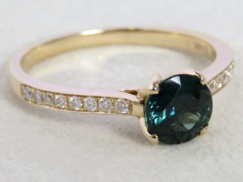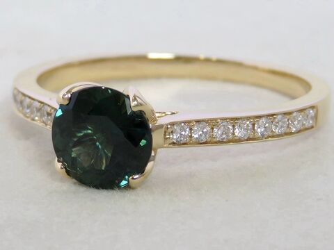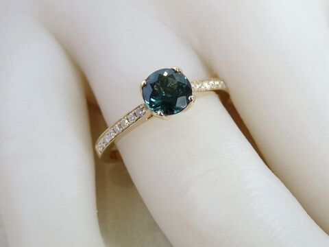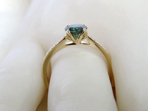 1.12ct Teal Sapphire & 0.16ct Diamond Ring in 14k Yellow Gold