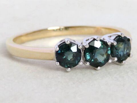 1.29ct Teal Sapphire Ring in 9k Yellow & White Gold