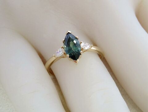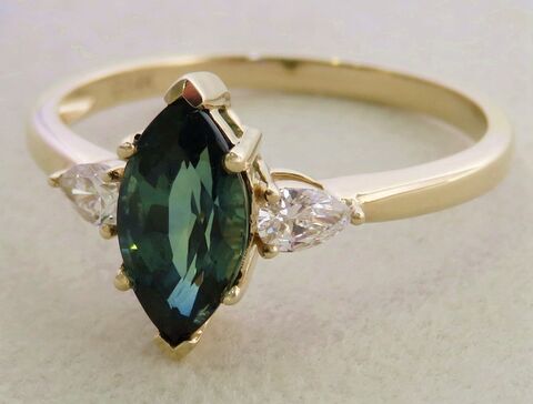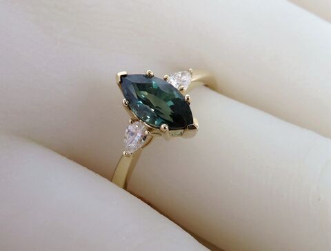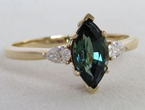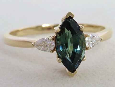 Natural Teal Sapphire: 9.7mm x 5.1mm, marquise cut, 1.57ct