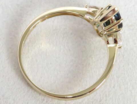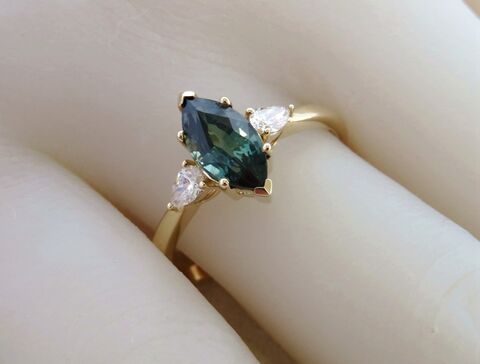 1.57ct Teal Sapphire & 0.2ct Diamond Ring in 14k Yellow Gold