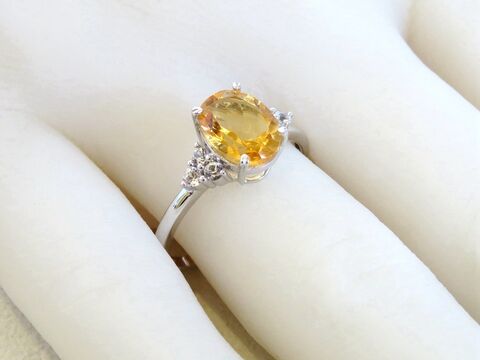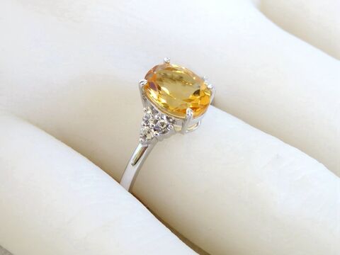 This exquisite 1.8ct natural Citrine ring glows with a warm, golden hue — a symbol of joy and light. The oval-cut Citrine is beautifully set in a 9k white gold band, framed by sparkling natural White Sapphire accents on each side that enhance its brilliance and add a touch of refined glamour.