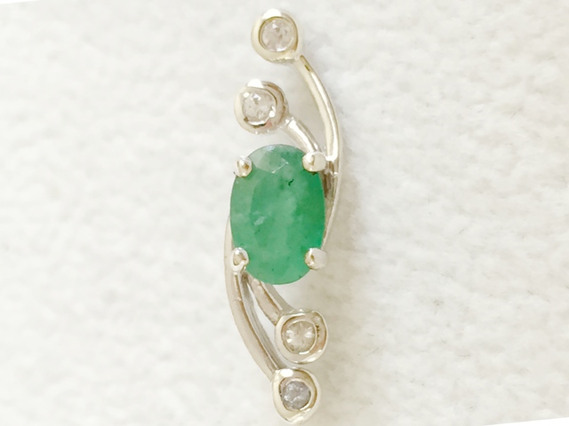 Emerald & White Sapphire Pendant in 9k White Gold ( Free Silver Chain)