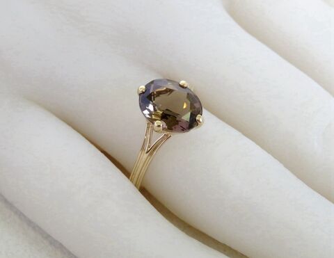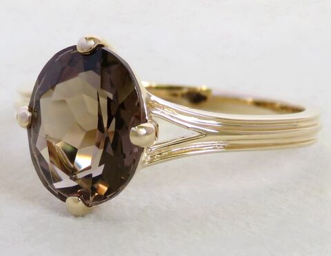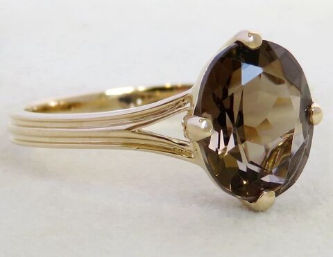 This elegant Smoky Quartz ring features a stunning 2.4ct natural oval-cut gemstone set in warm 9k yellow gold. The soft, earthy brown tones of the Smoky Quartz beautifully complement the polished gold band, creating a timeless and versatile design.