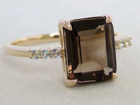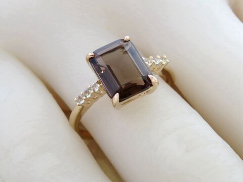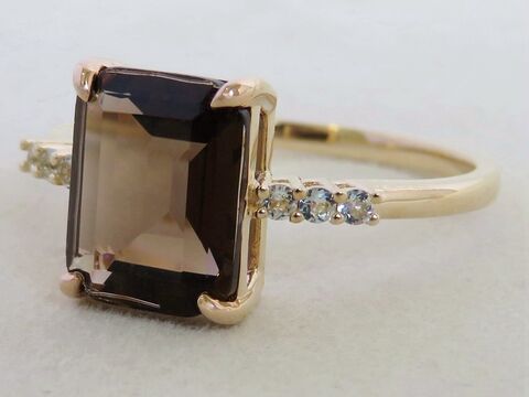 2.5ct Smoky Quartz & White Sapphire Ring in 9k Yellow Gold