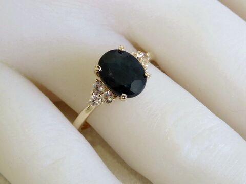2.6ct Black Sapphire & White Sapphire Ring in 9k Yellow Gold