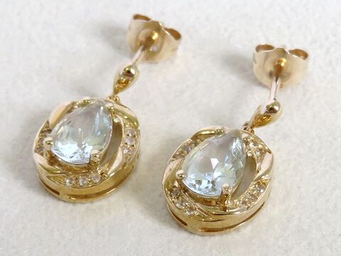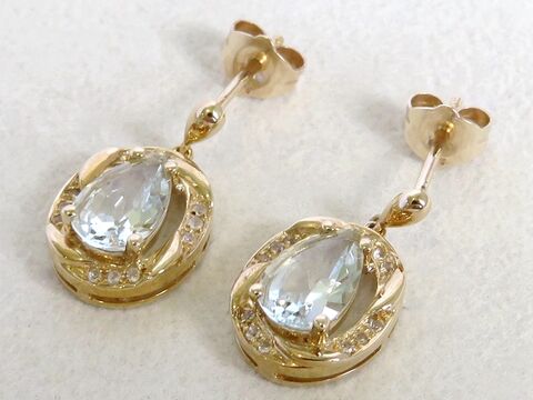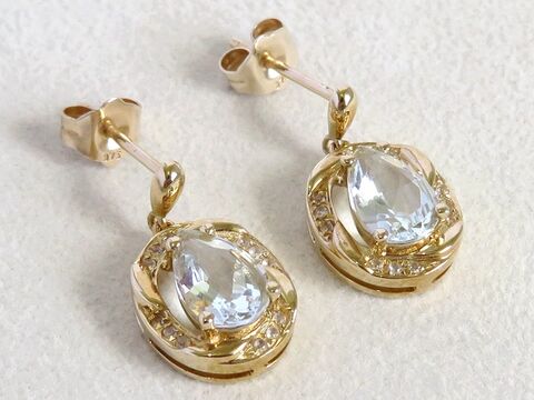 2ct Aquamarine Earrings with White Sapphire in 9k Yellow Gold