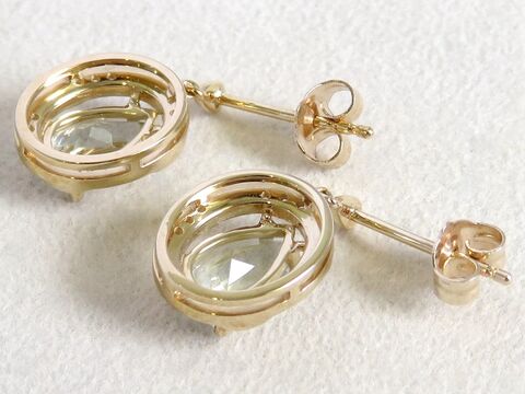 The center stones are wrapped in an intricate twisted-oval gold frame, finished with natural White Sapphire accents that add refined sparkle and enhance the Aquamarine’s luminous glow. Designed with a short drop style, these earrings offer graceful movement while remaining lightweight and comfortable for all-day wear.