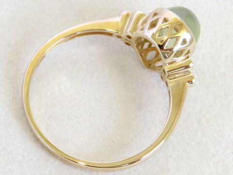 2ct Prehnite Ring with White Sapphire Accents in 9k Yellow Gold