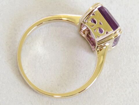 Crafted in solid 9k yellow gold, the warm tone of the band enhances the amethyst's rich colour, creating a luxurious and timeless statement piece. Perfect as a unique engagement ring, a February birthstone gift, or a standout dress ring — this handcrafted design embodies elegance and refined craftsmanship from CL Jewellery NZ.