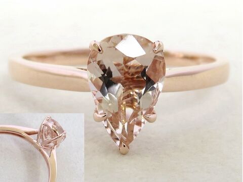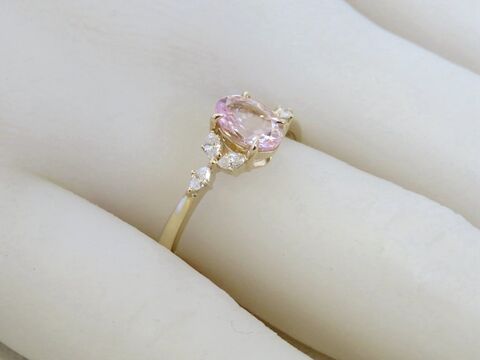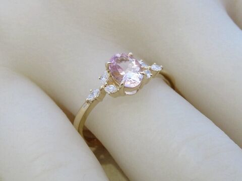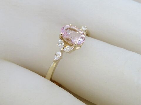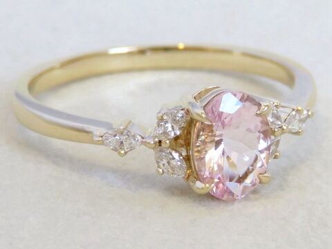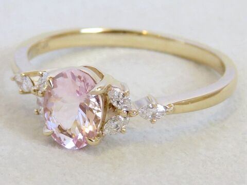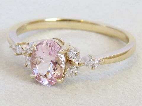 14k Yellow Gold Natural Pink Morganite & Diamond Engagement Ring