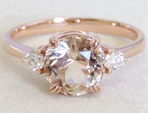 Pink Morganite & 0.24ct Diamond Engagement Ring in 14k Yellow Gold