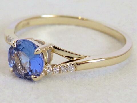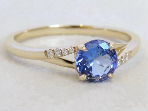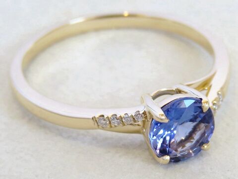 Round-Cut Tanznite & Diamond Ring in 14k Yellow Gold