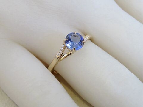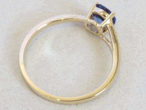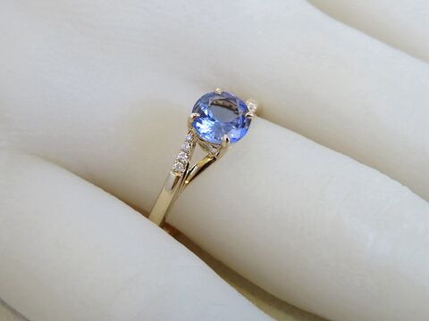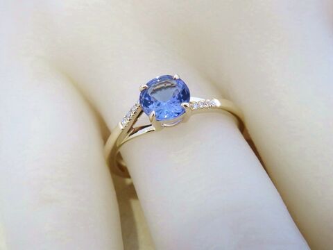 This stunning 14k yellow gold Tanzanite and diamond ring features a vibrant 6mm round-cut natural Tanzanite as the centerpiece. Known for its captivating blue-violet hues, Tanzanite makes a beautiful and unique choice for an engagement ring or special occasion jewellery. The stone is securely held in a classic four-prong setting, allowing its natural brilliance to shine from every angle.