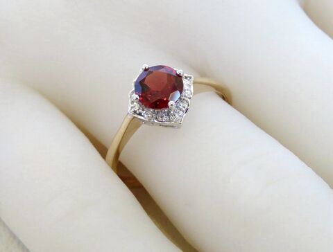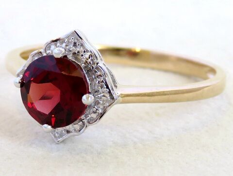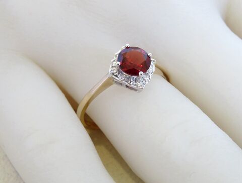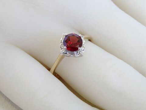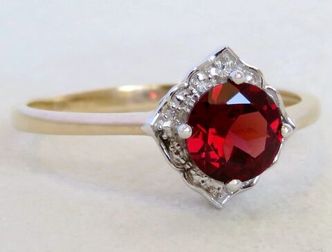 Round-Cut Red Garnet Ring in 9k Yellow & White Gold