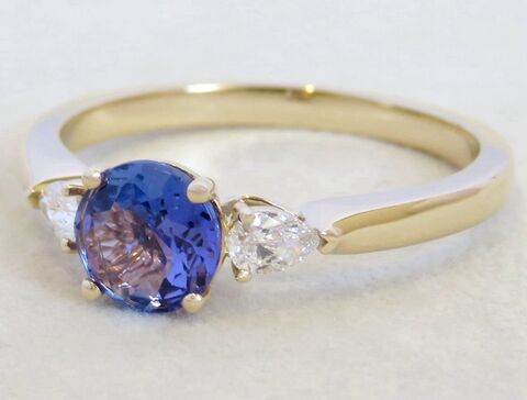 Round-Cut Tanzanite & 0.2ct Diamond Ring in 14k Yellow Gold