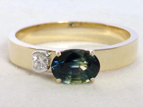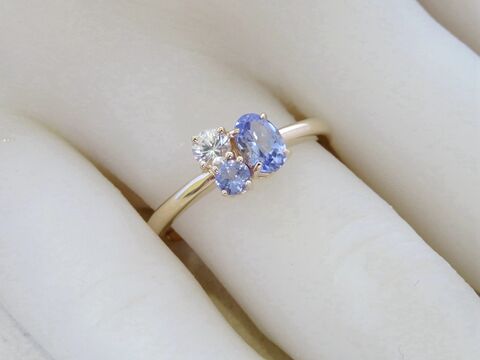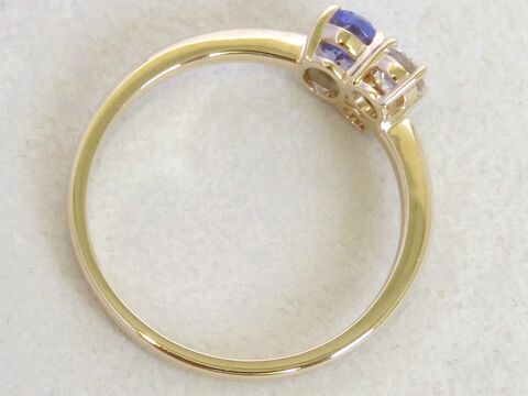 The combination of violet-blue Tanzanite and sparkling Topaz symbolises connection and harmony — a perfect choice for those who appreciate romantic and unique designs. The polished gold band keeps the look delicate yet timeless, ideal as an engagement ring, anniversary ring, or meaningful gift.