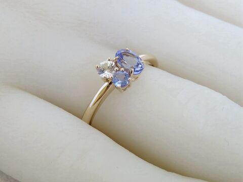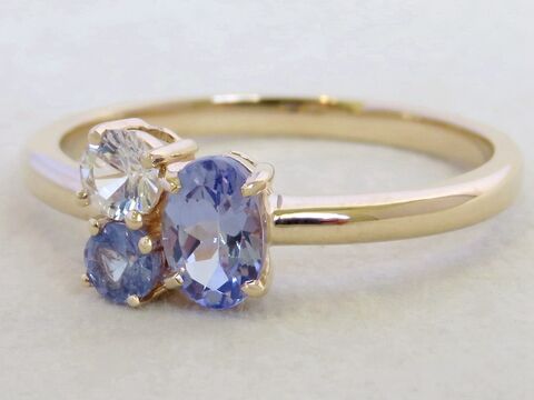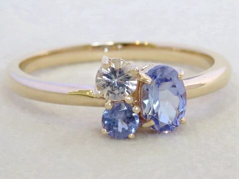 Tanzanite & White Topaz 3-Stone Ring in 9k Yellow Gold